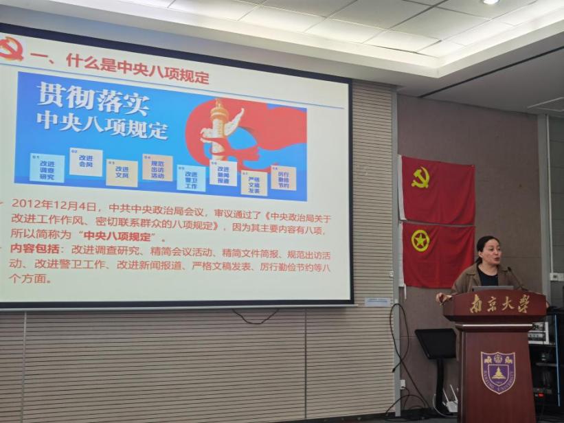 全体师生共同观看了中央八项规定的学习视频。环生教工党支部书记尹颖领学中央八项规定及其实施细则精神,并结合实际工作指出全体师生党员都应切实增强纪律和规矩意识,筑牢拒腐防变的思想堤坝。