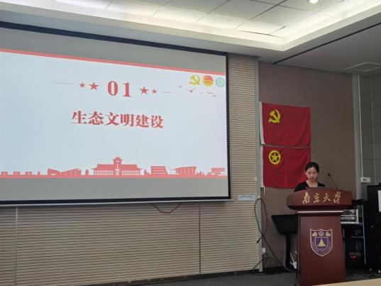 环生教工党支部赵伟分享了学习习近平生态文明思想与bw西汉姆联校史内涵的深刻感悟,通过讲述自身在南大的求学和工作经历,生动展现了南大人在生态文明建设领域的奋进担当,勉励员工们从自身专业出发,肩负起新时代美丽中国建设的责任与使命。
